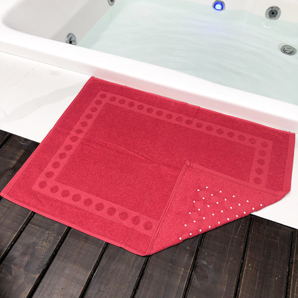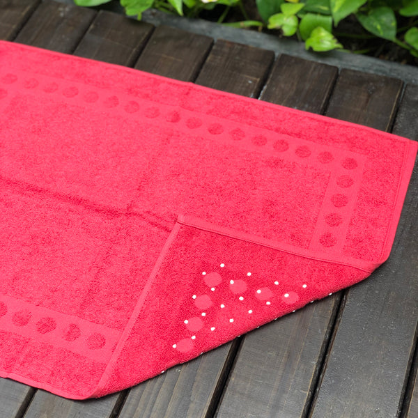 As laterais dessas toalhas de piso vêm com desenhos de círculos em alto relevo, atribuindo um destaque a peça.