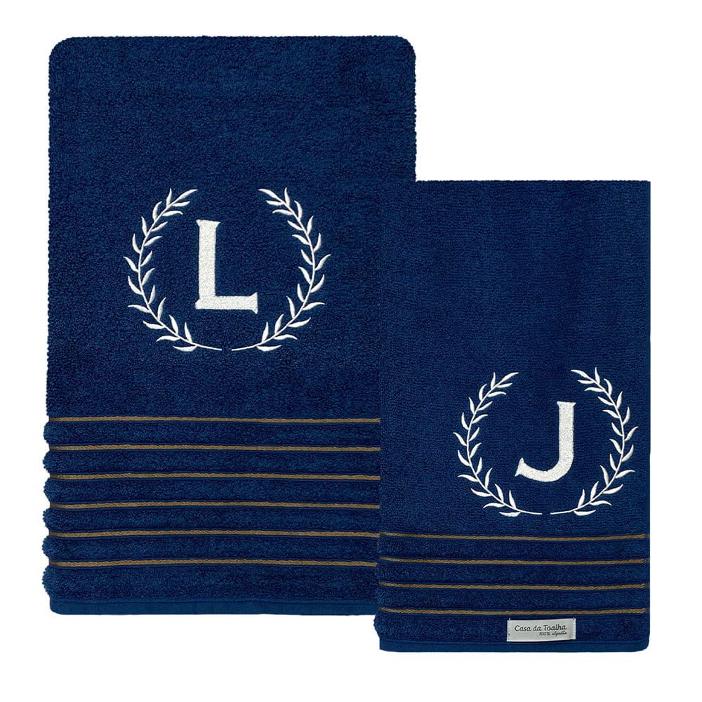 O jogo de toalha monograma banho e rosto azul da Casa da Toalha inclui: