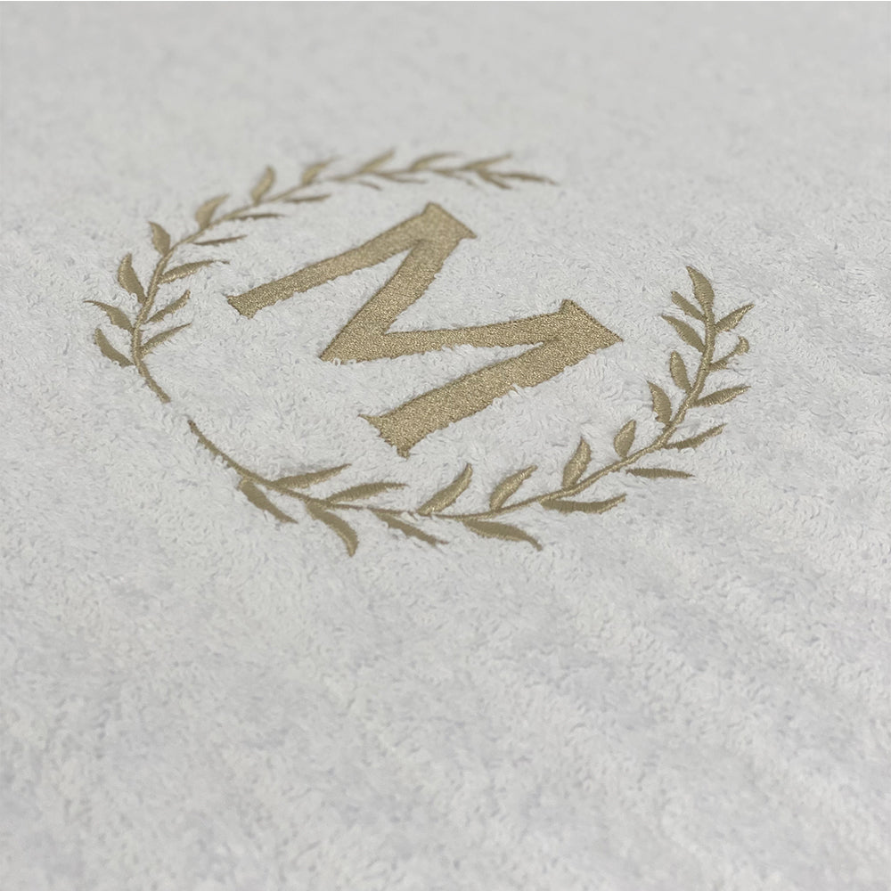 O monograma é bordado na toalha, com acabamento cuidadoso e alinhado. Isso traz um visual mais elegante e resistente do que estampas comuns, mantendo o charme mesmo após várias lavagens.