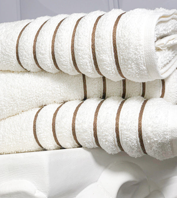 O toque da toalha de banho 100% algodão gramatura 500 kit com 5 coleção Essence off white lembra um abraço quentinho, daqueles que convidam a ficar mais alguns minutos relaxando depois do banho.