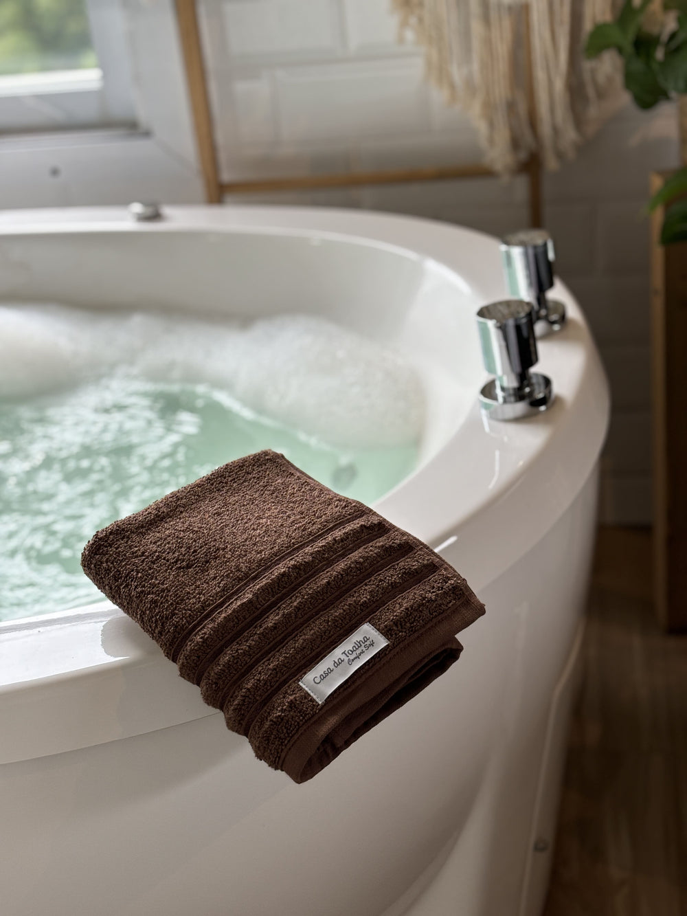 A textura, o peso e o visual transmitem a mesma experiência de toalhas de hotéis e spas, trazendo essa atmosfera de cuidado profissional para dentro de casa.